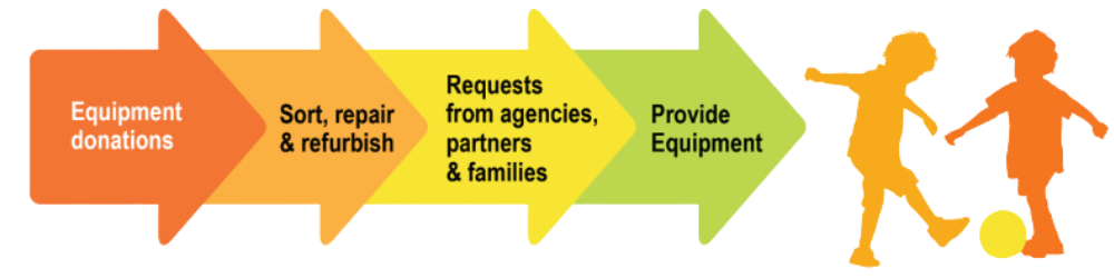 • We receive, repair, refurbish and redistribute gently used sports equipment to kids aged 4-17 in families facing financial hardship.